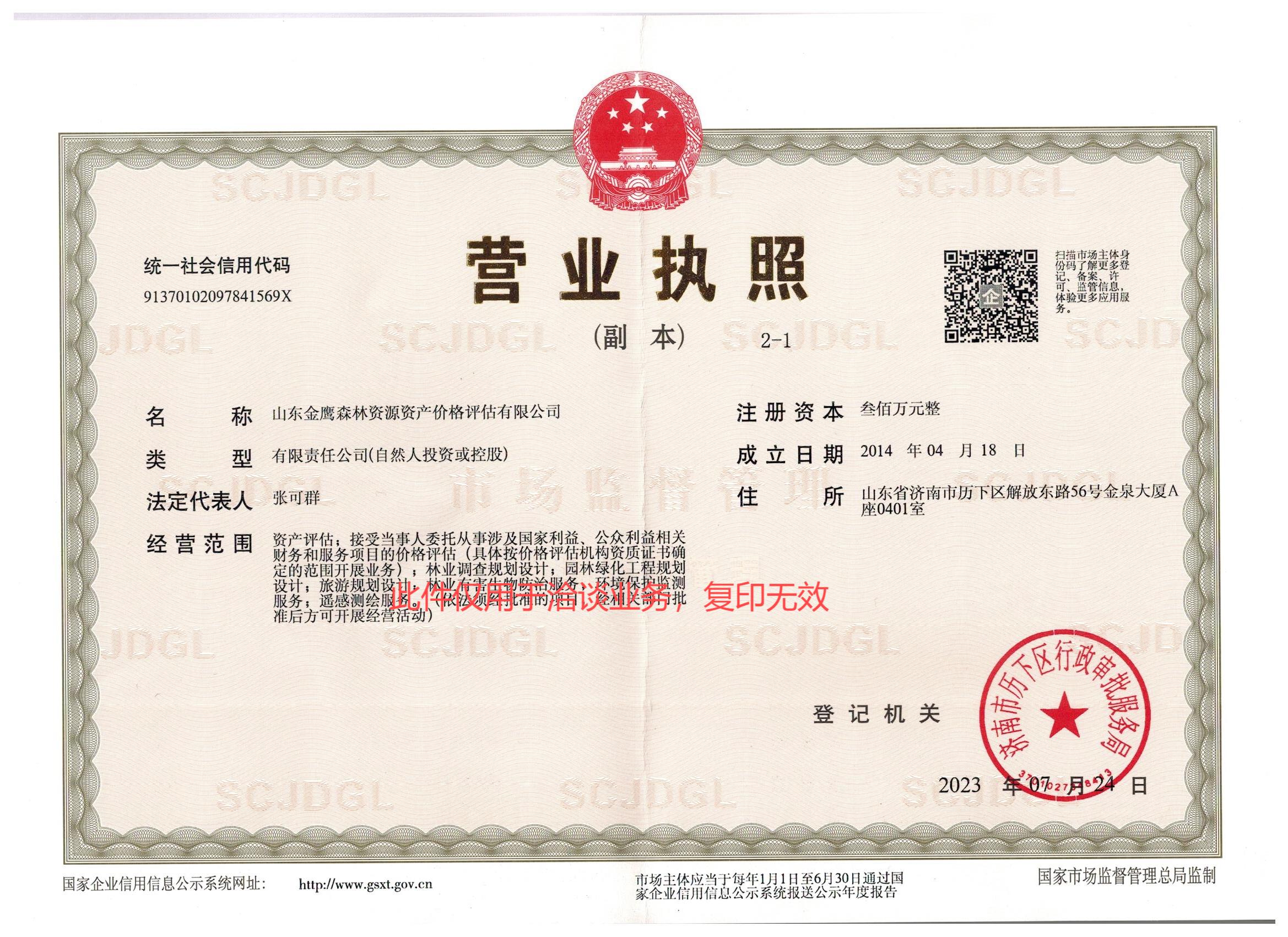 山東金鷹森林資源資產(chǎn)價(jià)格評(píng)估有限公司于2014年4月由山東省林業(yè)科技培訓(xùn)中心立項(xiàng)組建成立,后注冊(cè)改為民營(yíng)企業(yè),實(shí)行公司化經(jīng)營(yíng),注冊(cè)資金300萬(wàn)元。本公司是經(jīng)原省林業(yè)廳審核,省物價(jià)局批準(zhǔn)頒發(fā)的第一批省內(nèi)森林資源資產(chǎn)價(jià)格評(píng)估資格的專(zhuān)業(yè)機(jī)構(gòu)。